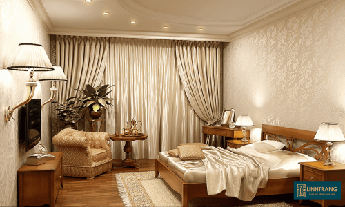 Rèm tân cổ điển với chất vải cao cấp nhập khẩu có độ bền cao, thiết kế bắt mắt, tôn lên vẻ đẹp đẳng cấp và gia thế của chủ nhà.